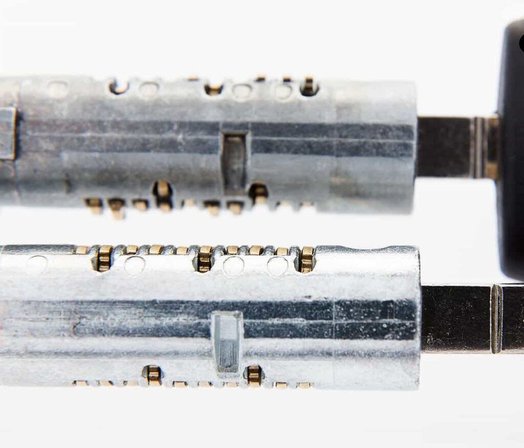 This is how the lock is when it’s brand new. The problem comes after a few years of constant wear and tear. Firstly the key blades become worn. You can see in this photo that the blade looks less crisp when compare to a new blade.
