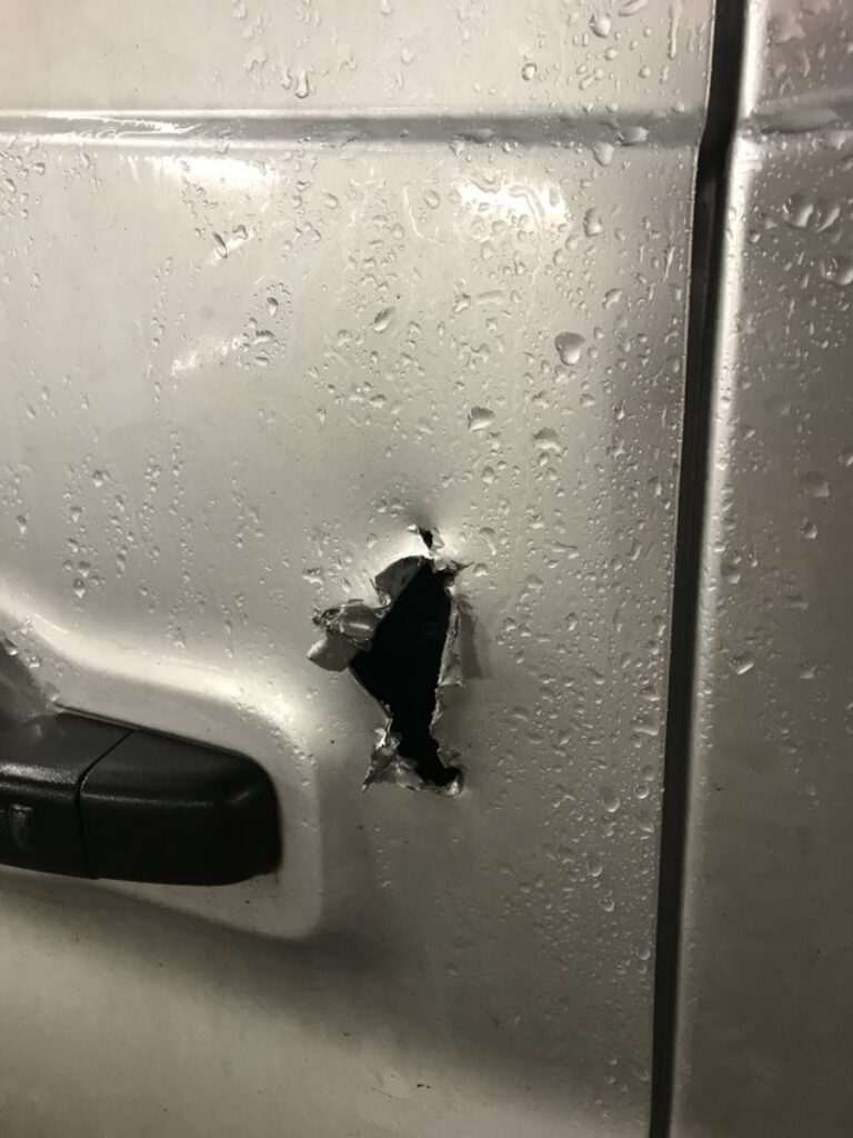 As you can see, the rear door can be peeled open with the correct tools. Once the thieves get better at this, it can be just a small hole and you may not even notice.